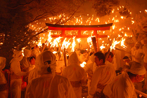 毎年二月六日、神倉山を炎が駆け下ります。それが、お燈まつり