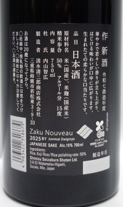 清水醸造 作 純米大吟醸原酒《新酒》 昨今の日本酒ブーム、また清水醸造作の全国展開、さらに伊勢神宮遷宮、伊勢志摩サミットの関係が度重なり、長期にわたっての割り当て状態、品切れ状態が続きみなさまに大変ご迷惑をおかけしております。 つきましては、今後も割り当て状態、品切れ状態が続き解消のめどは立っておりません。 その中で、今回の作純米大吟醸原酒≪新酒≫が発売されます。つきましては下記の【おことわり】について、ご承諾いただいた中でのご予約とさせていただきます。 発売時期予定 6年11月下旬(12月初旬) 6年12月 7年1月 7年2月 《飲んでみました》 作の純米大吟醸ランクということとこの価格を考えるとかなりのお買い得感の高いお酒です。新酒ながらも口当たりも粗さも穏やかで、しっかりとした原酒らしい素直な味わいとさわやかな酸がお楽しみいただけます。 もちろん、お酒を主役として楽しんでほしいタイプ。よって濃い味わいやこってりと合わせるともったいないです。塩気や酸味があり淡白な肴や料理と共にワイングラスでお楽しみください。 【ご予約についてのおことわり】 ◆お一人様2本までとさせていただきます。 ◆入荷次第の発送となります。多少のお届け日のズレはご了承ください。 ◆蔵元予定数量等により減数される場合お届けができない場合がございます。 ◆蔵元都合により、酒米変更を余儀なくなる場合があります。 ◆お届けには、酒ボックス代金が加算されます。 |